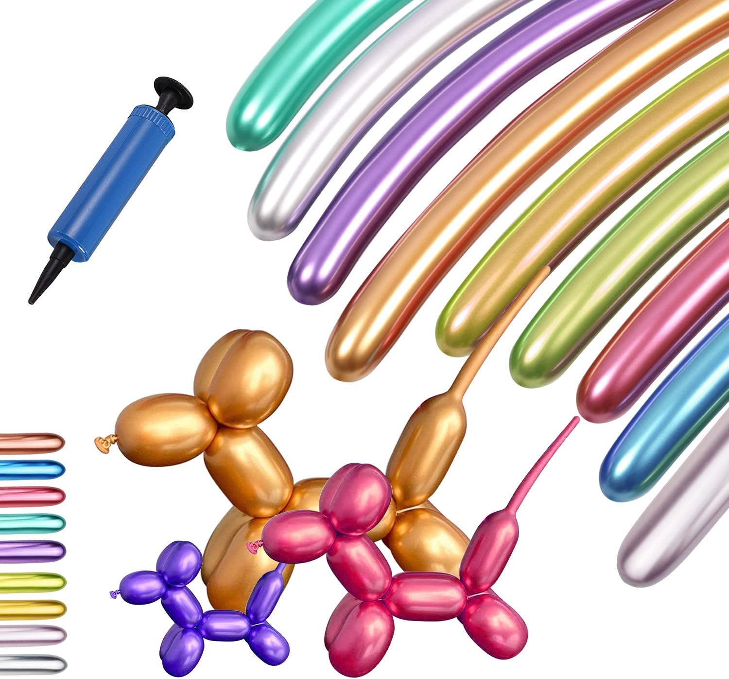 Amazon Com Balloons For Balloon Animals 100pcs Long Twisting Balloons Kit With Pump Metallic 260 Latex Balloons Kit For Animal Making Magic Chrome Balloons Mixed Color For Birthday Wedding Festival Party Toys